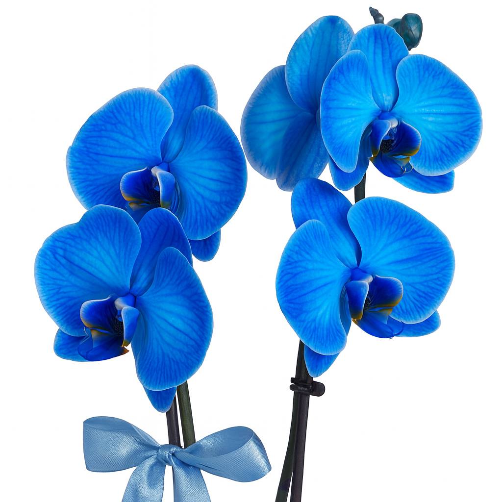 Çift Dallı Mavi Portakal Orkide, nadir renk uyumu ve etkileyici çift dal yapısıyla olağanüstü bir çiçek deneyimi sunar. Egzotik güzelliği ve zarafeti ile hediye ve dekorasyonlar için unutulmaz bir tercih.