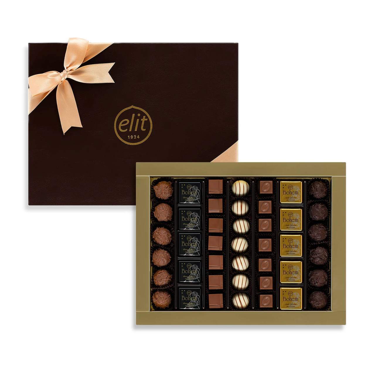 Karışık Spesiyal Çikolata Deri Grenli Kutu 568g Glutensiz, lüks ve çeşitliliğin kutudaki şöleni! Özenle hazırlanan karışık çikolatalar, glutensiz formülüyle hem göze hem damağa hitap ediyor.