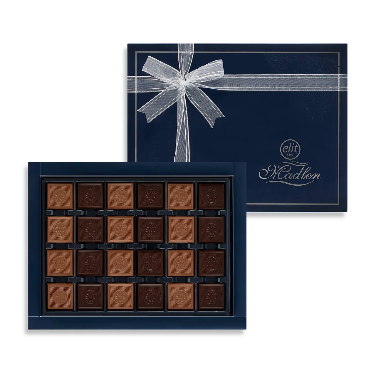 Sütlü ve Bitter Madlen Çikolata Lacivert Kutu 430g Glutensiz, lezzet ve zarafetin mükemmel dengesi! Özenle seçilmiş sütlü ve bitter çikolatalardan oluşan bu şık koleksiyon, özel anlara lüks bir dokunuş katıyor.