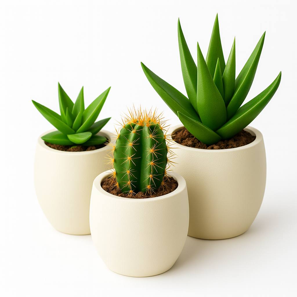 Üçlü Çöl Saksısı, minimalist tasarımı ve dayanıklı yapısıyla modern iç mekanlara doğal bir dokunuş katıyor. Farklı boyutlardaki üçlü set, dekorasyona uyum sağlama esnekliği sunar.
